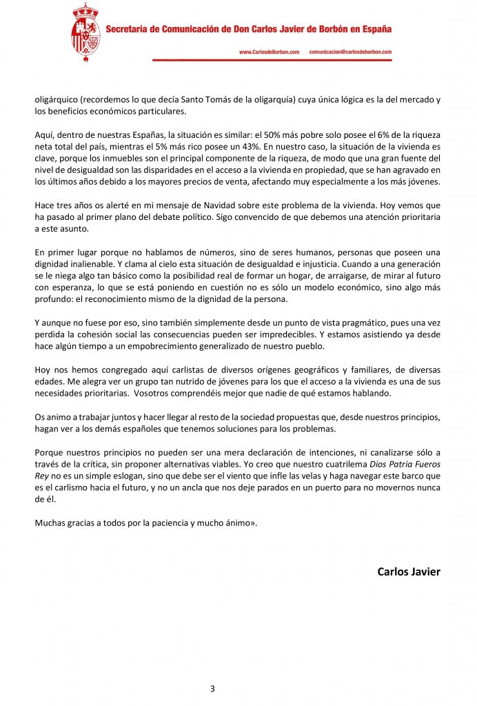 Discurso de Don Carlos en Madrid el 14 de marzo